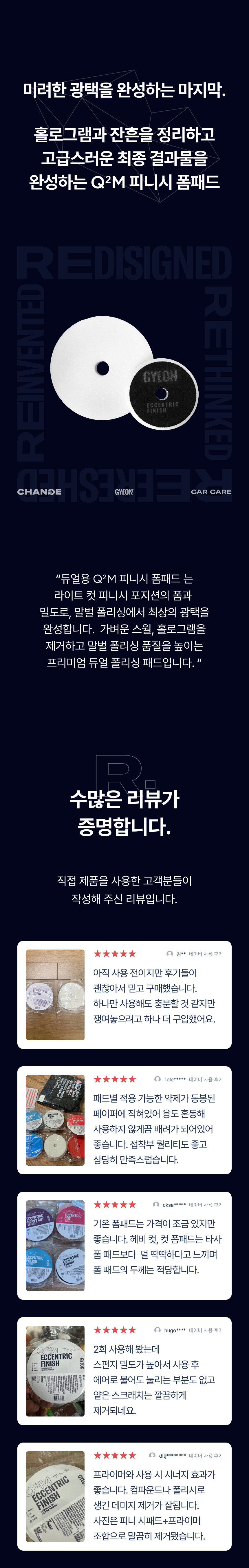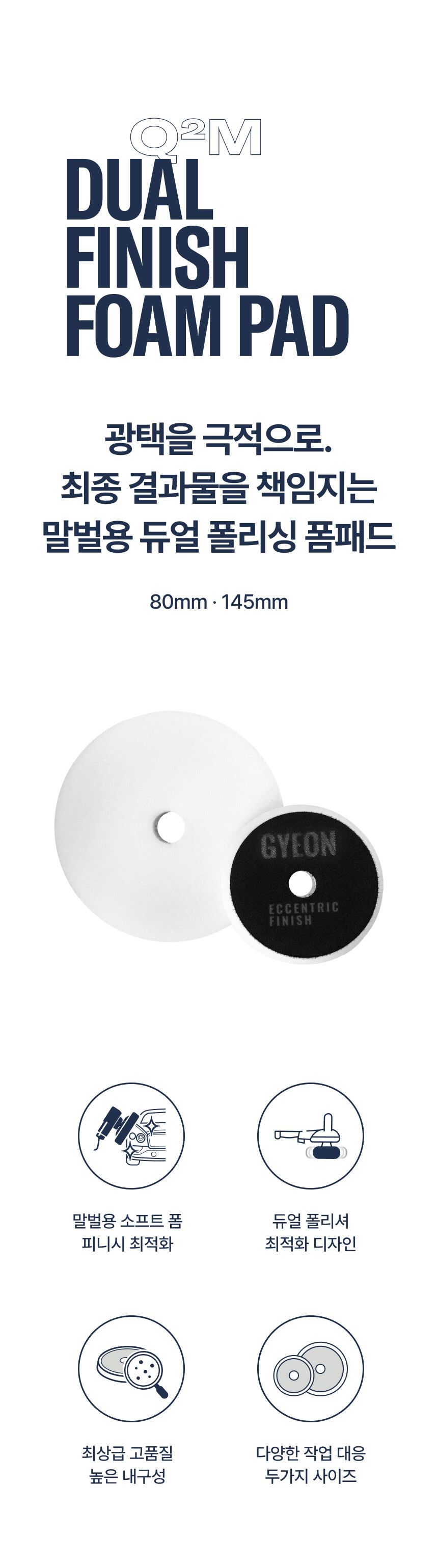 듀얼머신 전용제품으로 글로시를 완성하는 광택작업시 사용을 권장하며 도장면 손상이 미세하거나 작은 결함을 제거하는 경우에도 사용할 수 있습니다.